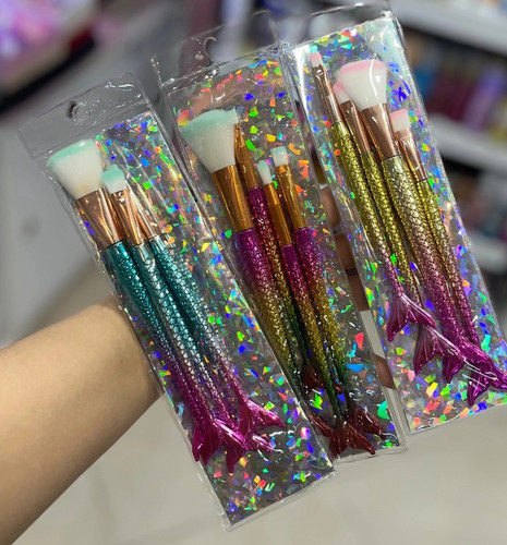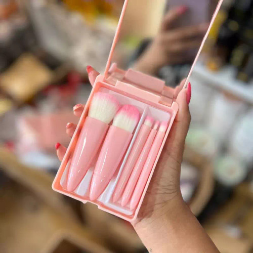 پک براش آینه دار 5 تکه دسته بلند رنگ صورتی