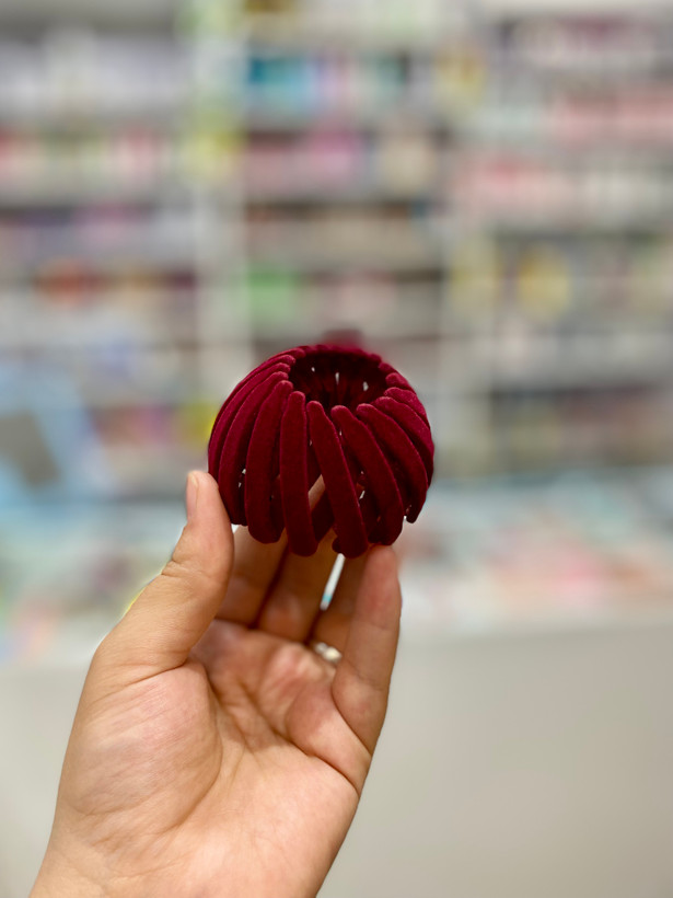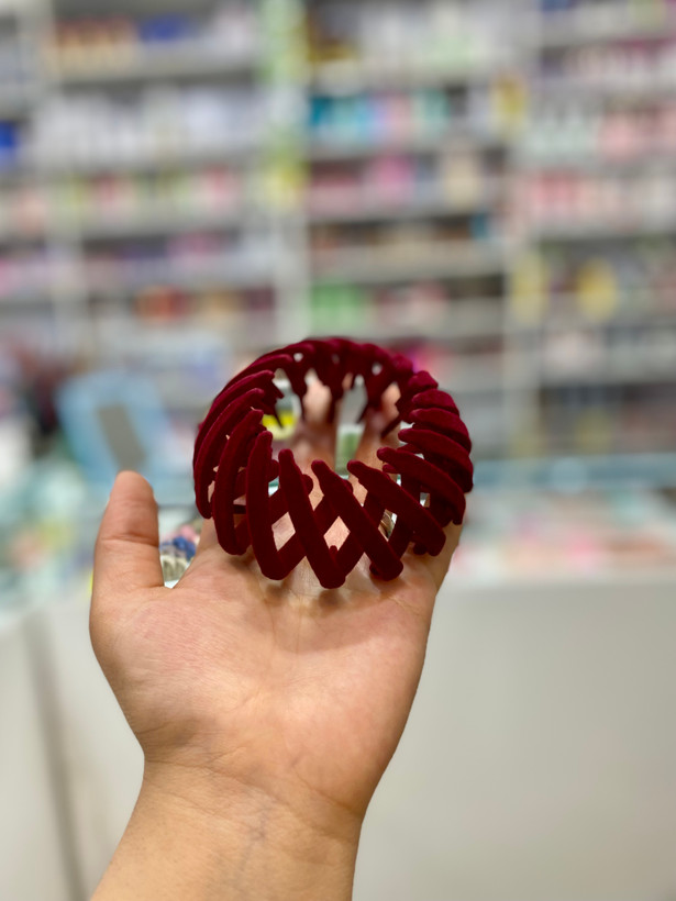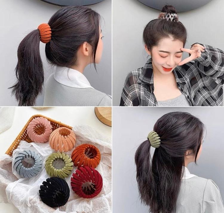 این گیره سر گوجه ای یا چنگکی یا لانه پرنده ای از روکش مخملی پلاستیکی ساخته شده است. گیره مو بسیار انعطاف پذیر است، به راحتی شکسته نمی شود، بسیار قوی و بادوام است. بسیار ساده و شیک است و برای استفاده روزانه قابل استفاده است. طراحی جمع شونده گیره مو برای نگهداری بسیار مناسب است و می توان آن را با خود حمل کرد.