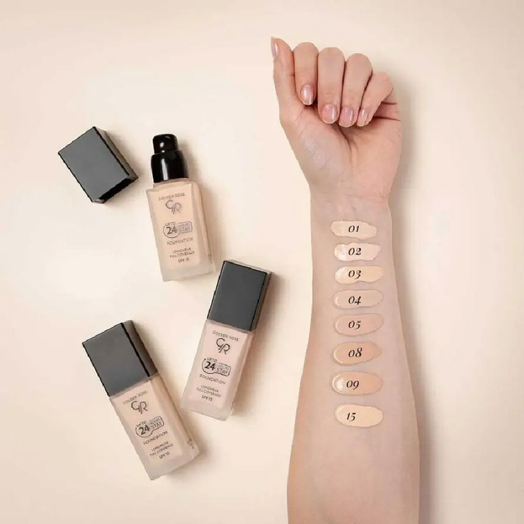 داشتن پوستی صاف و یکدست آرزوی هر فردی است. اصلی ترین مولفه در زیبایی چهره، پوست صاف و یکدست است. یک کرم پودر خوب و باکیفیت پوستی صاف و زیبا را به شما هدیه می دهد. اگر می خواهید آرایشی زیبا و چشم نواز داشته باشید به هیچ وجه اهمیت کرم پودر را نادیده نگیرید. در هنگام انتخاب کرم پودر حتما به متناسب بودن نوع و رنگ آن با پوست خود توجه داشته باشید. اگر به دنبال یک کرم پودر خوب با رنگ بژ طبیعی هستید ما به شما کرم پودر 24 ساعته شیشه ای SPF15 گلدن رز مدل UP TO 24 HOURS STAY حاوی آووکادو شماره 08 رنگ بژ طبیعی حجم 35 میل را پیشنهاد می کنیم. کرم پودری با بافت سبک، پوشش دهی کامل و نیمه مات که تا 24 ساعت دوام می آورد. از نکات قابل توجه این کرم این است که مدتی پس از استفاده شاهد کاهش لک و تیرگی های پوست خود خواهید بود. همچنین با تغذیه سلولهای پوستی از آسیب به پوست جلوگیری کرده و با خاصیت آنتی اکسیدانی خود با رادیکال های آزاد که عامل مهم پیری پوست هستند، مبارزه کرده و ضد چین و چروک است.